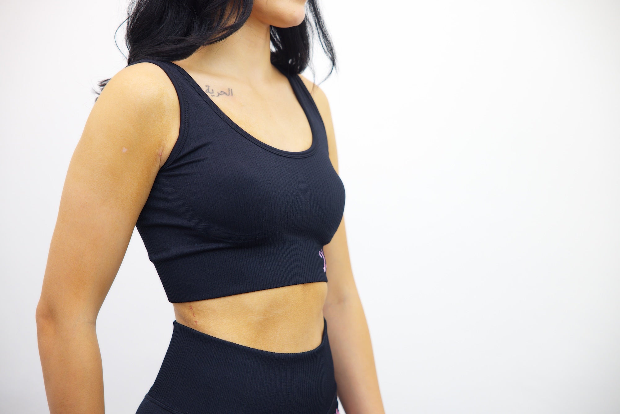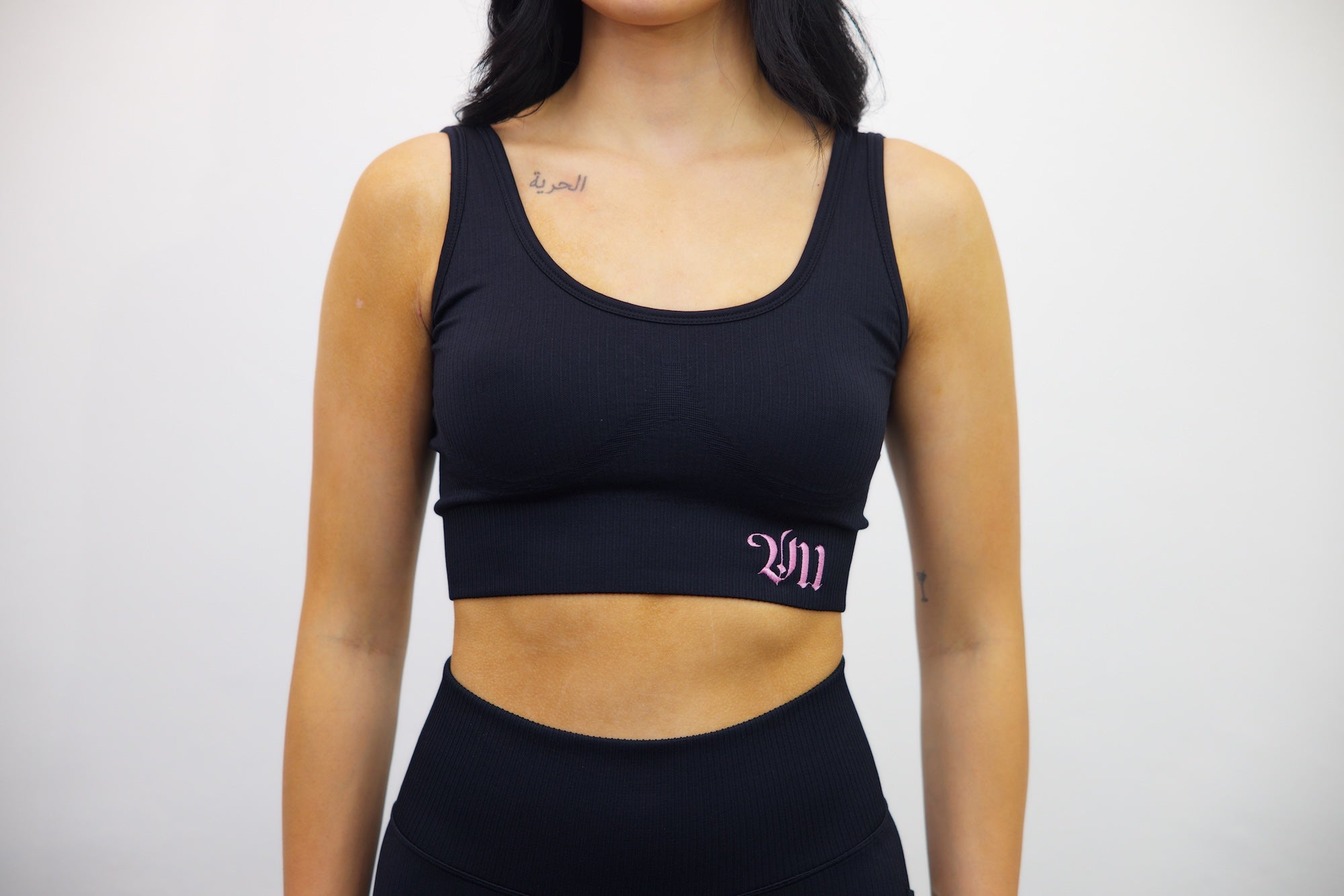 Longline Tank Sports Bra – Black/Light Pink
