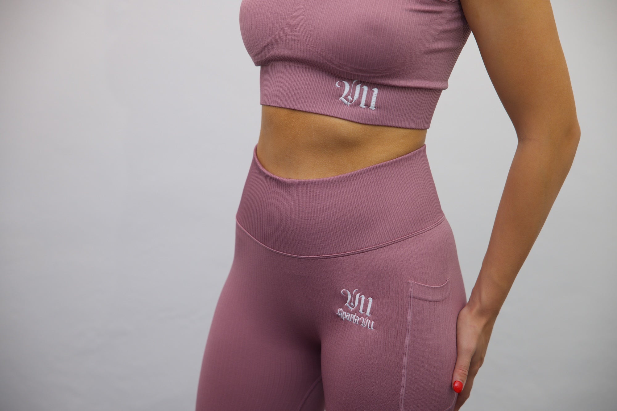 Wrap High Waisted Legging - Mauve/White Embroidery