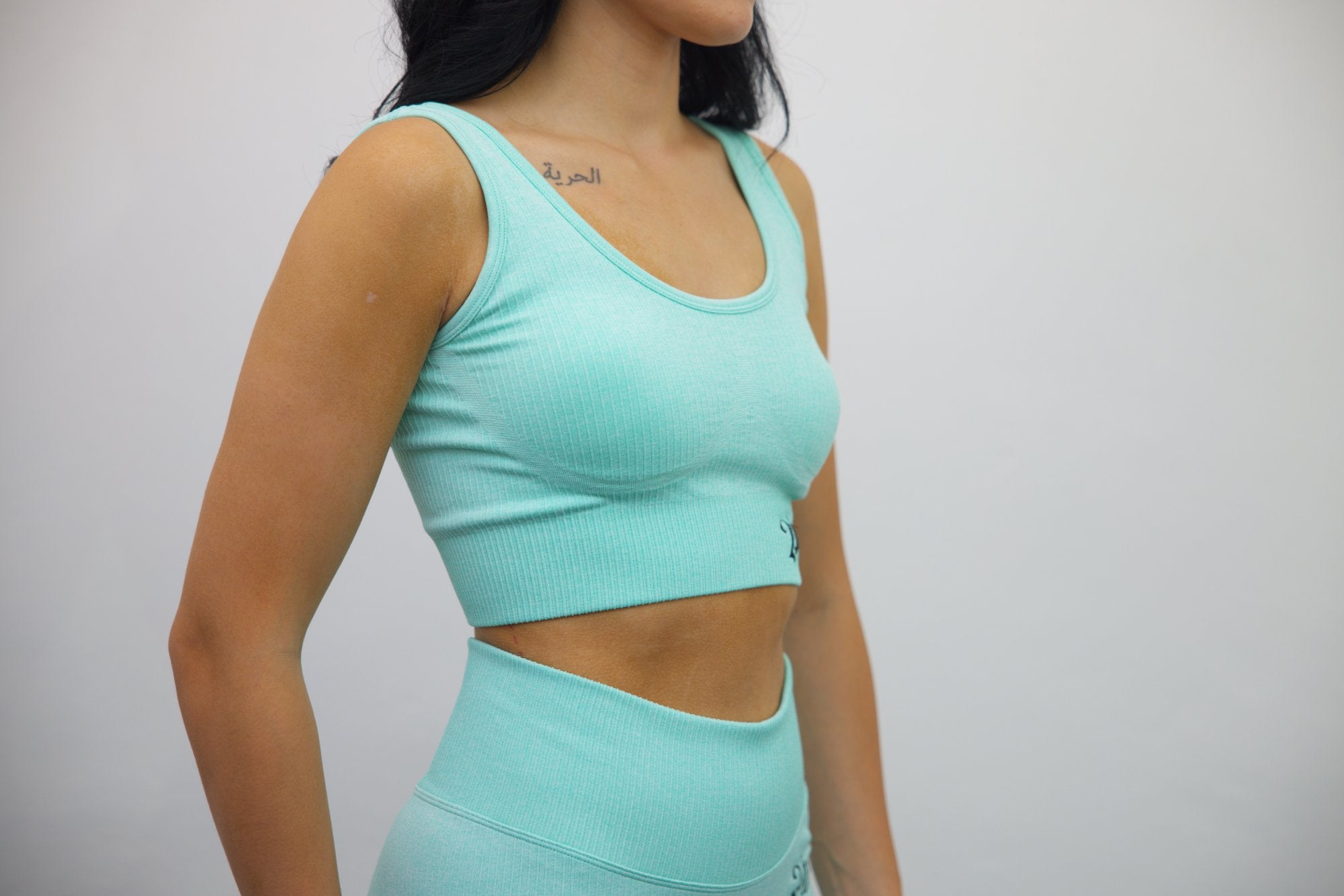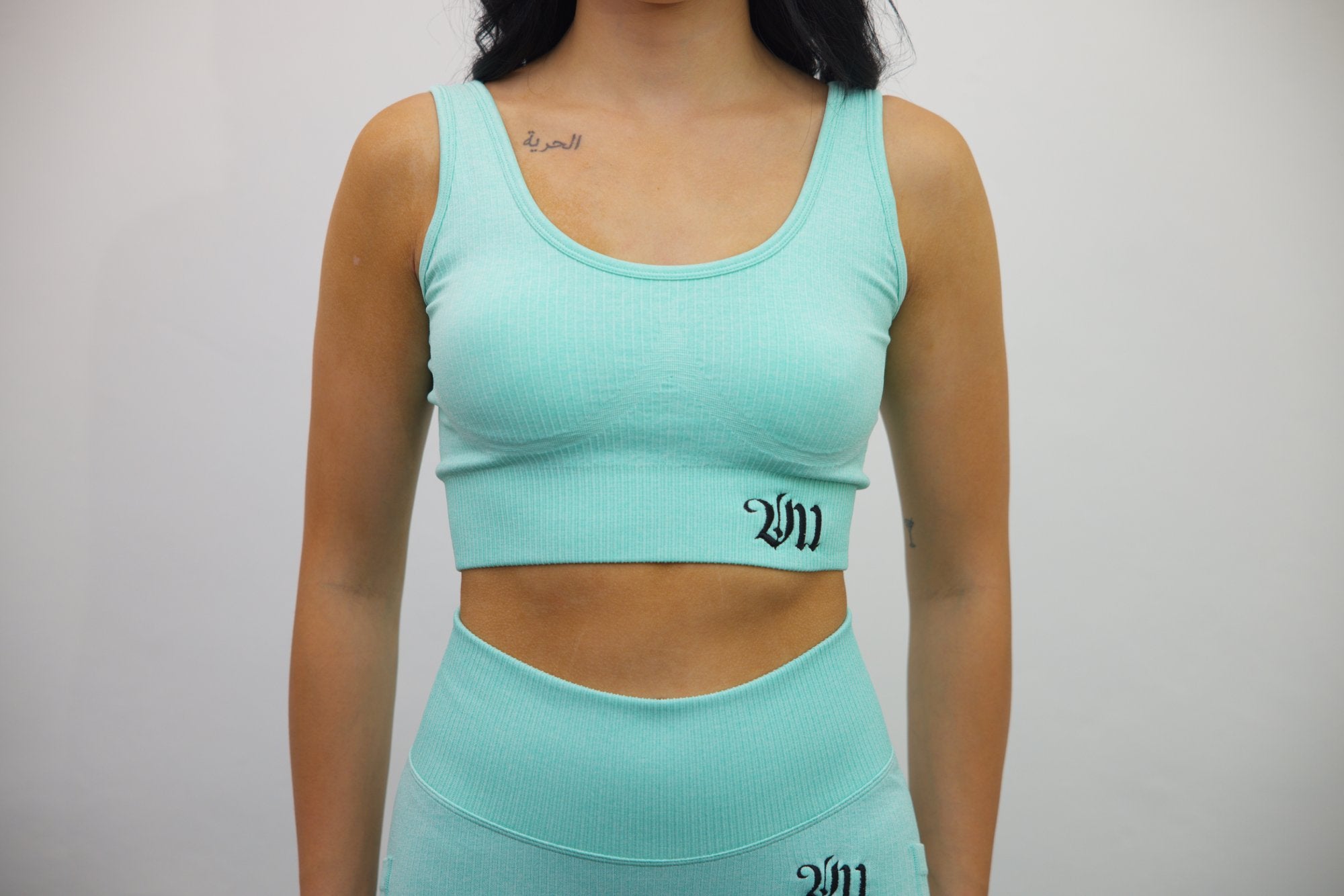Longline Tank Sports Bra – Mint/Black Embroidery